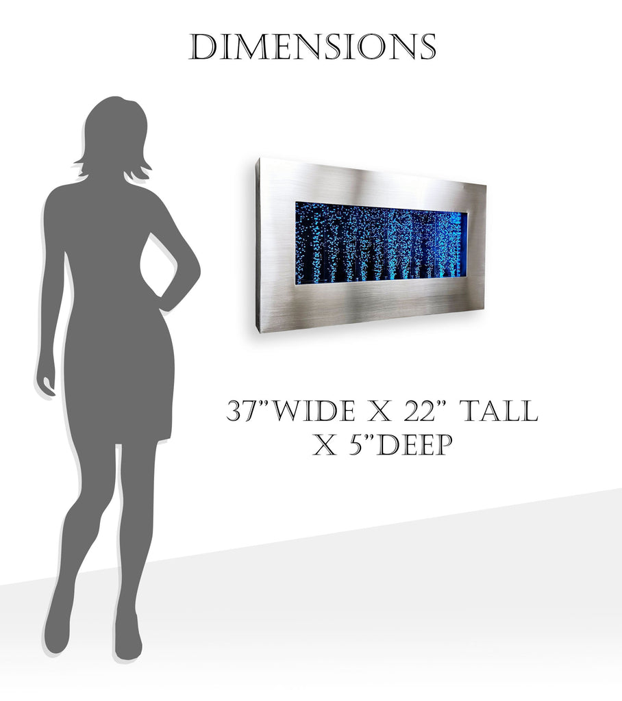 Premium Stainless Steel Horizontal Wall Mounted Bubble Wall Fountain with Color Changing LED lighting & Remote Control